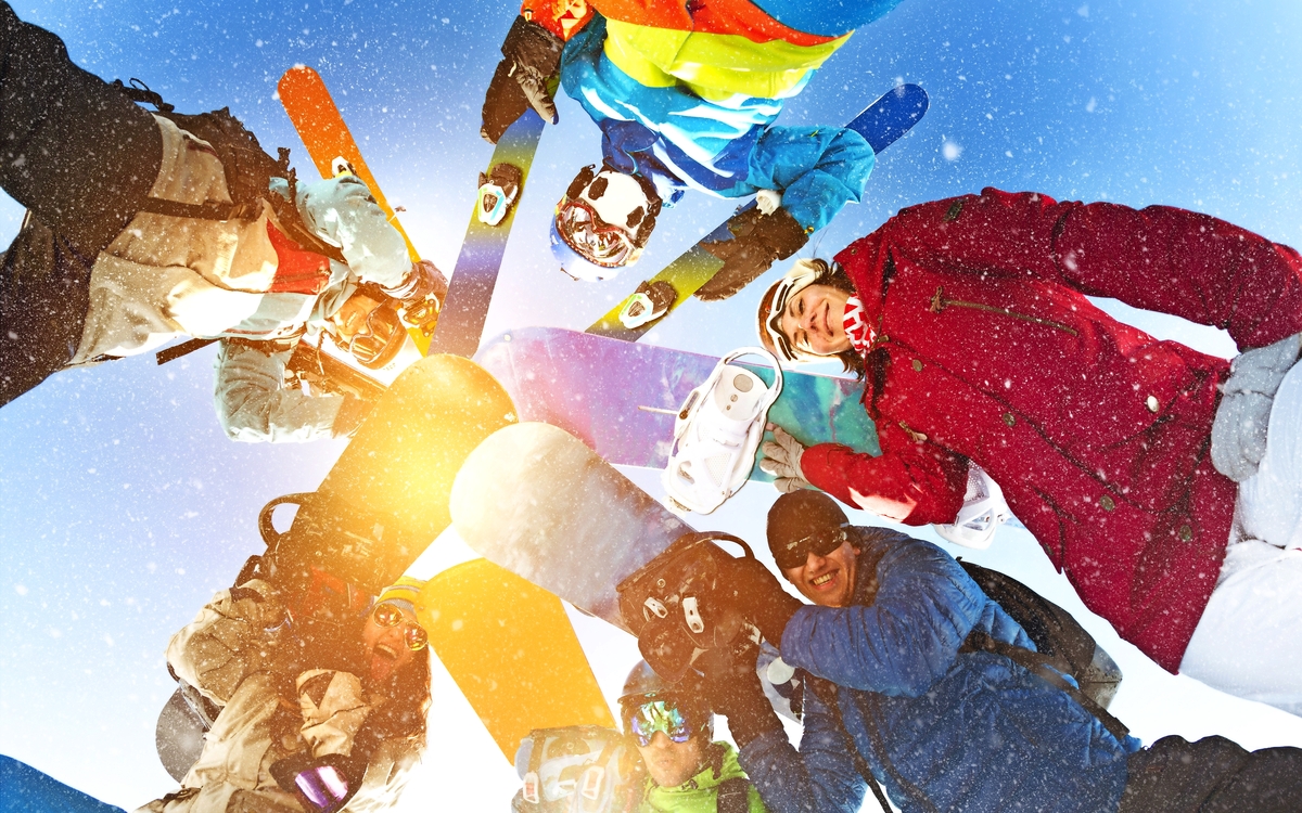Gruppe glücklicher Snowboarder und Skifahrer im Kreis - © cppzone - Fotolia